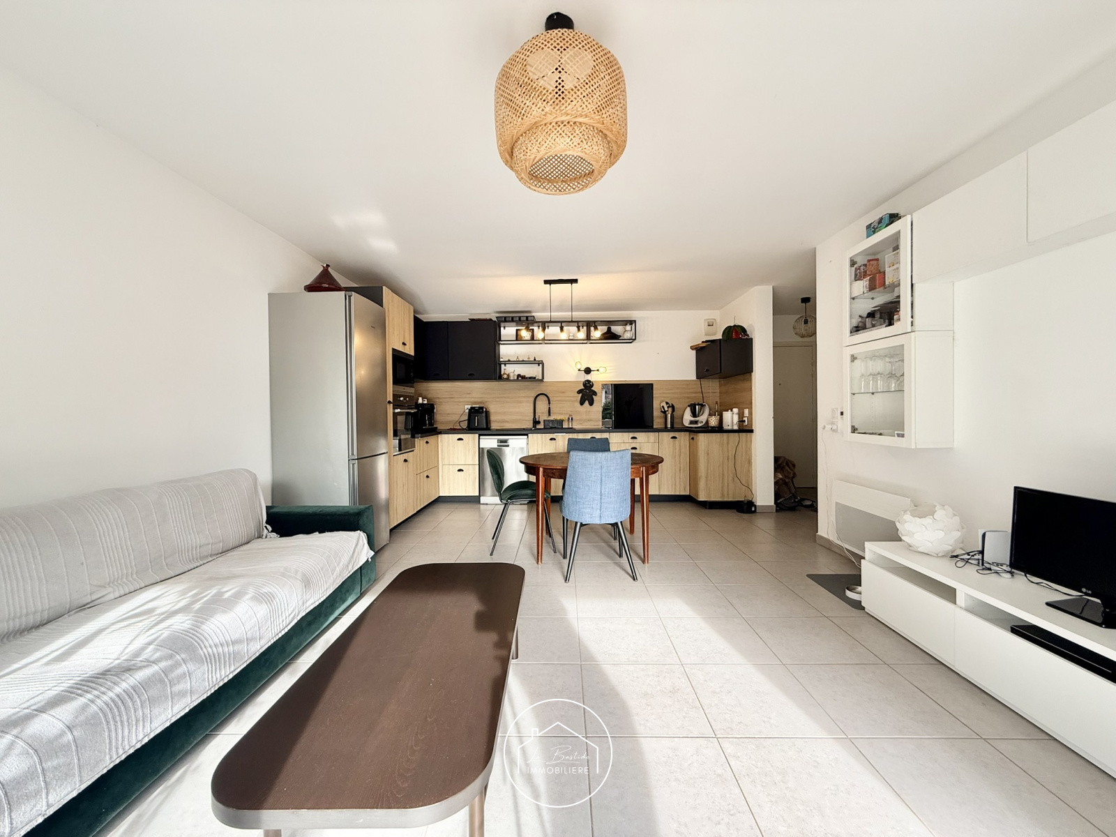 L’appartement se compose d'une entrée avec placard, d'un séjour avec cuisine ouverte, lumineux et convivial exposé sud, deux chambres confortables avec dressing, une salle d'eau et des toilettes séparés.