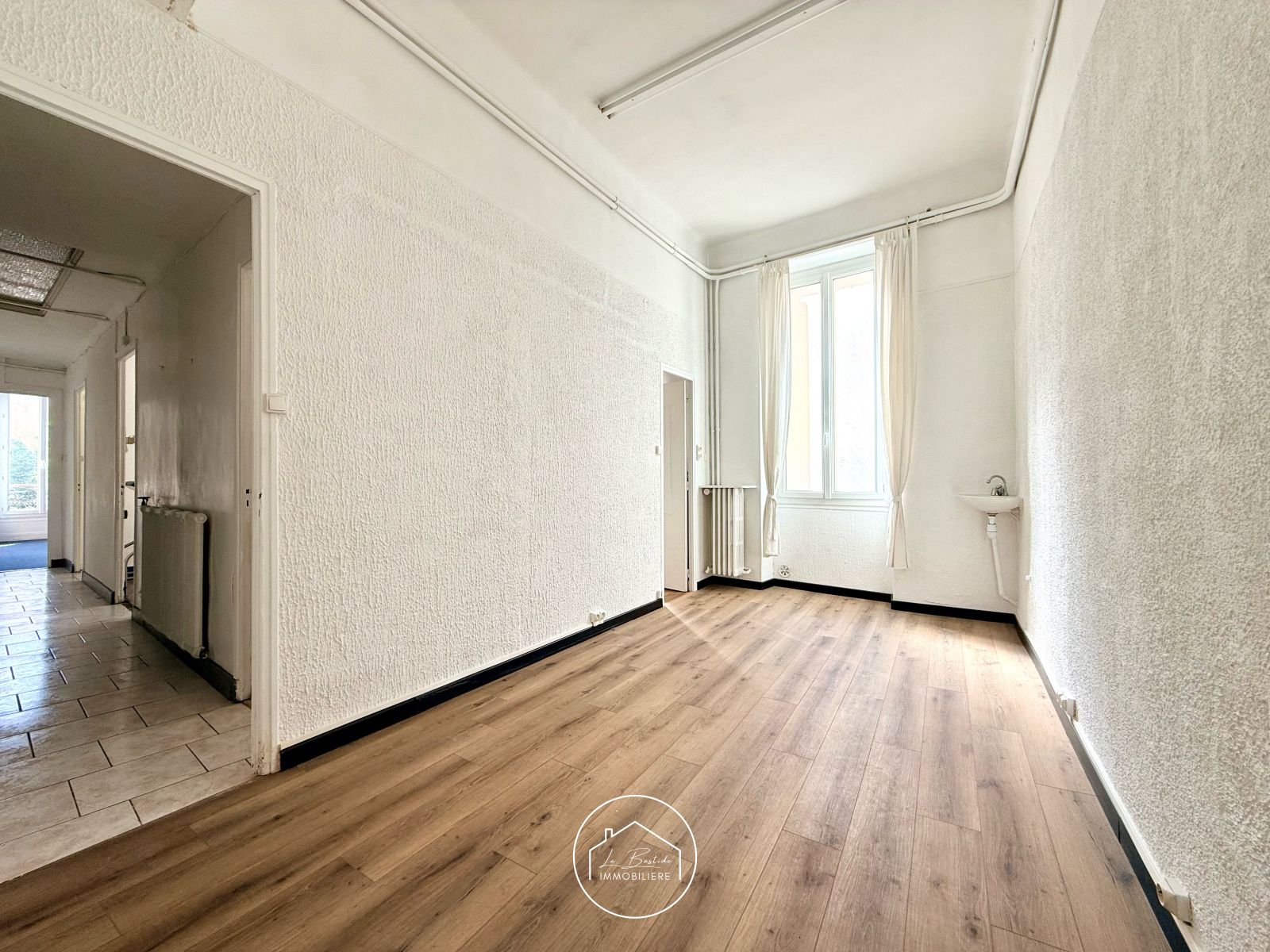 Au 1er étage avec ascenseur, le bien s’ouvre sur une vaste entrée de plus de 16 m² qui structure intelligemment l’espace. Il dessert trois pièces aux surfaces équilibrées (environ 10 m², 12 m² et 13 m²), idéales pour des chambres confortables, des bureaux individuels ou des espaces de consultation. Un espace de 7,7 m², à repenser selon vos besoins, pourra accueillir une cuisine familiale, un coin repas ou encore un espace fonctionnel type vestiaire ou salle de pause pour une activité tertiaire. Le séjour de plus de 22 m² constitue une pièce centrale lumineuse, parfaite comme espace de vie convivial ou bureau principal.