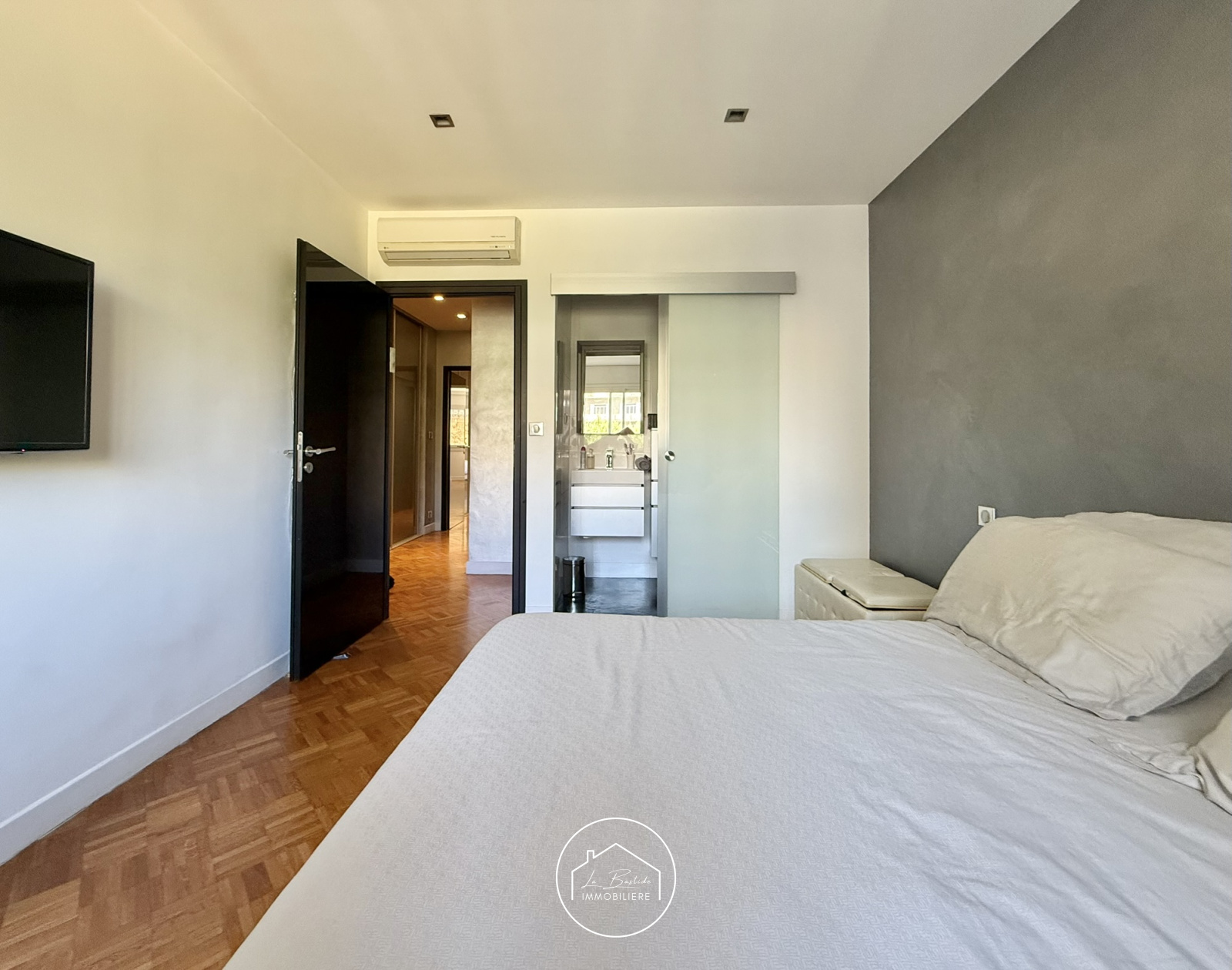 L’appartement dispose de trois belles chambres, chacune avec sa salle de bain ou salle d’eau privative, garantissant confort et intimité. Son agencement traversant assure une luminosité naturelle constante tout au long de la journée. De nombreux rangements intégrés viennent parfaire ce bien à la fois élégant et fonctionnel.
