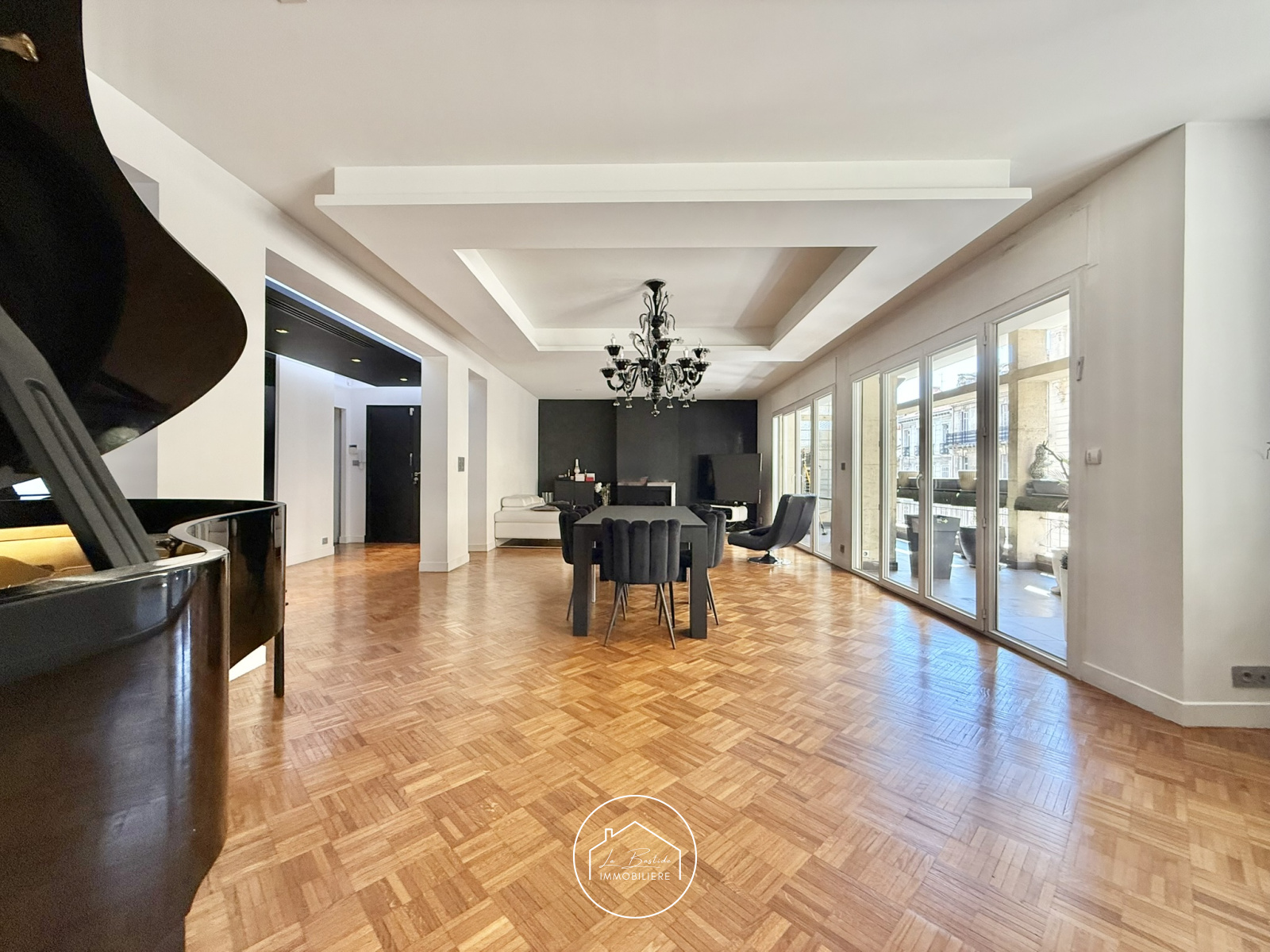Ce bien rare, entièrement rénové avec des prestations haut de gamme, séduit par ses volumes généreux et sa luminosité exceptionnelle. L’espace de vie principal de plus de 57 m², baigné de lumière grâce à de larges ouvertures, s’ouvre sur une terrasse de 15 m² exposée plein sud, idéale pour profiter de moments de détente.