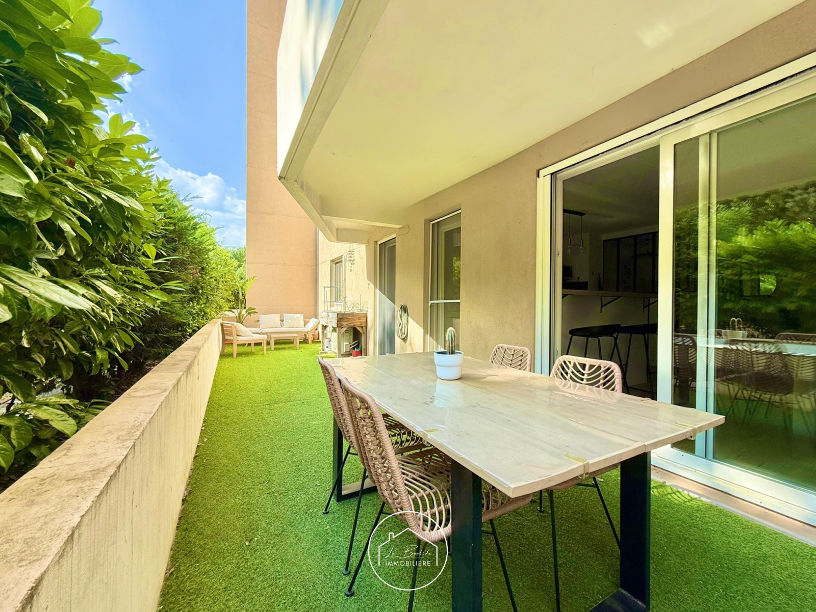Cet appartement en rez-de-jardin de 68 m² au calme, sans vis-à-vis, se compose d’un spacieux séjour de 36 m² avec cuisine américaine équipée, séparée par un bar et une verrière , ouvrant sur une grande terrasse de 30 m² sans vis-à-vis, idéale pour profiter d’un extérieur calme à Marseille. L’espace nuit dessert deux chambres avec placard, une salle de bains et des WC indépendants.