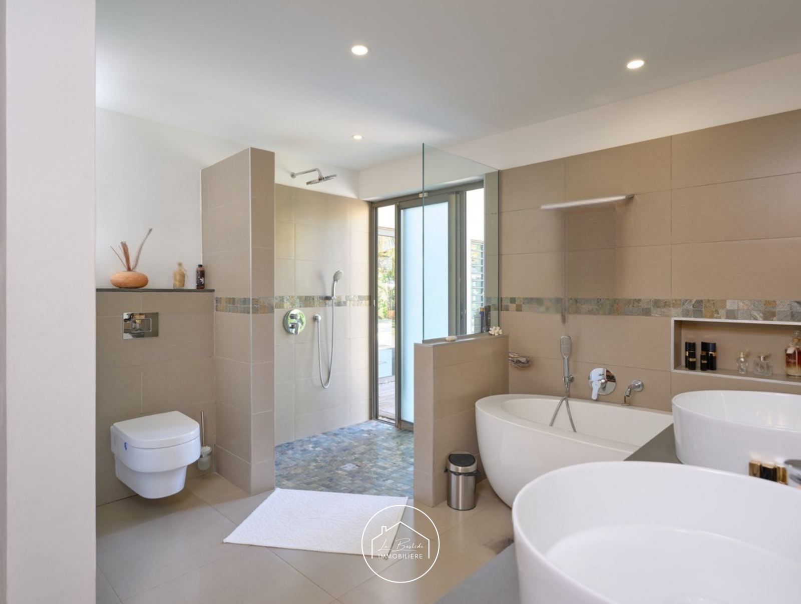 Édifiée sur un terrain de 1 185 m², sans aucun vis-à-vis, la villa se compose de :